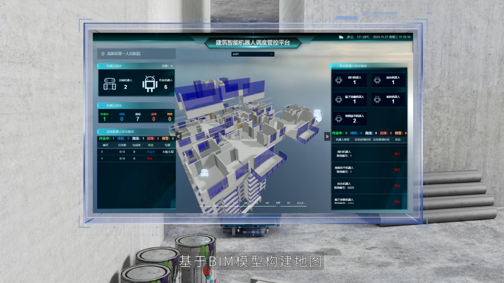 ‑ 基于 5G/LoRa 双链路云端调度,支持多台机器人同步路径规划,自动避让塔吊吊臂、泵车臂架等动态障碍。 -